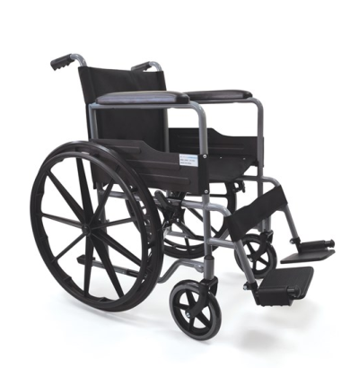 Αναπηρικό αμαξίδιο πτυσσόμενο με υφασμάτινη επένδυση.Ιδιαίτερα ανθεκτικό, με ρυθμιζόμενα σε μήκος προσθαφαιρούμενα υποπόδια.Ανακλινόμενα πλαϊνά στηρίγματα με άνετα υποβραχιόνια και σπαστή πλάτη.Προσθαφαιρούμενοι πίσω τροχοί με σύστημα quick release,το οποίο δίνει την δυνατότητα κίνησης σε στενούς χώρους με τα πίσω μικρά ροδάκια που διαθέτει.
