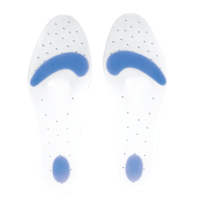 Ημίσκληρο πέλμα ¾ για την βελτίωση της πλατυποδίας και την ανύψωση της ποδικής καμάρας. Το διαμορφωμένο μπλε τμήμα σιλικόνης βοηθάει στην απορρόφηση των κραδασμών. Το μήκος επιτρέπει στα δάκτυλα να κινούνται. Συσκευασία σε ζεύγος.