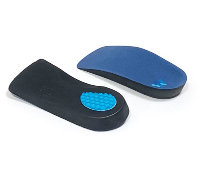 Ανατομικά πέλματα από σιλικόνη υψηλής ποιότητος, με υποαλλεργική και αντιεφιδρωτική δράση. Αεριζόμενα. Φέρουν μαξιλάρι ανύψωσης κεφαλών μεταταρσίου. Ειδικά διαμορφωμένα μπλε τμήματα στα δάκτυλα και την πτέρνα απορρόφησης των κραδασμών. Ανακουφίζουν από το άλγος. Ιδανικά για κουρασμένα πόδια.