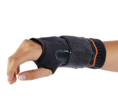 Νάρθηκας από πλαστικό υλικό, με οπές αερισμού. Αυτοκόλλητος και ρυθμιζόμενος ιμάντας περίδεσης για σωστή εφαρμογή. Εσωτερικά, ο νάρθηκας διαθέτει υφασμάτινο γάντι για την προστασία του δέρματος. Διατίθεται σε αριστερό